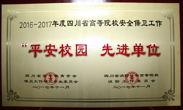 “平安校园”是通过学校自荐、片区推荐的方式,根据“平安校园”建设的考核标准,由四川省高教保卫学会、消防协会常务理事会集体研究并授予。旨在进一步落实“创建平安校园,构建和谐社会”的工作目标,充分调动保卫干部的主动性,以切实加强高校安全稳定工作,我校已多次获得此奖项。