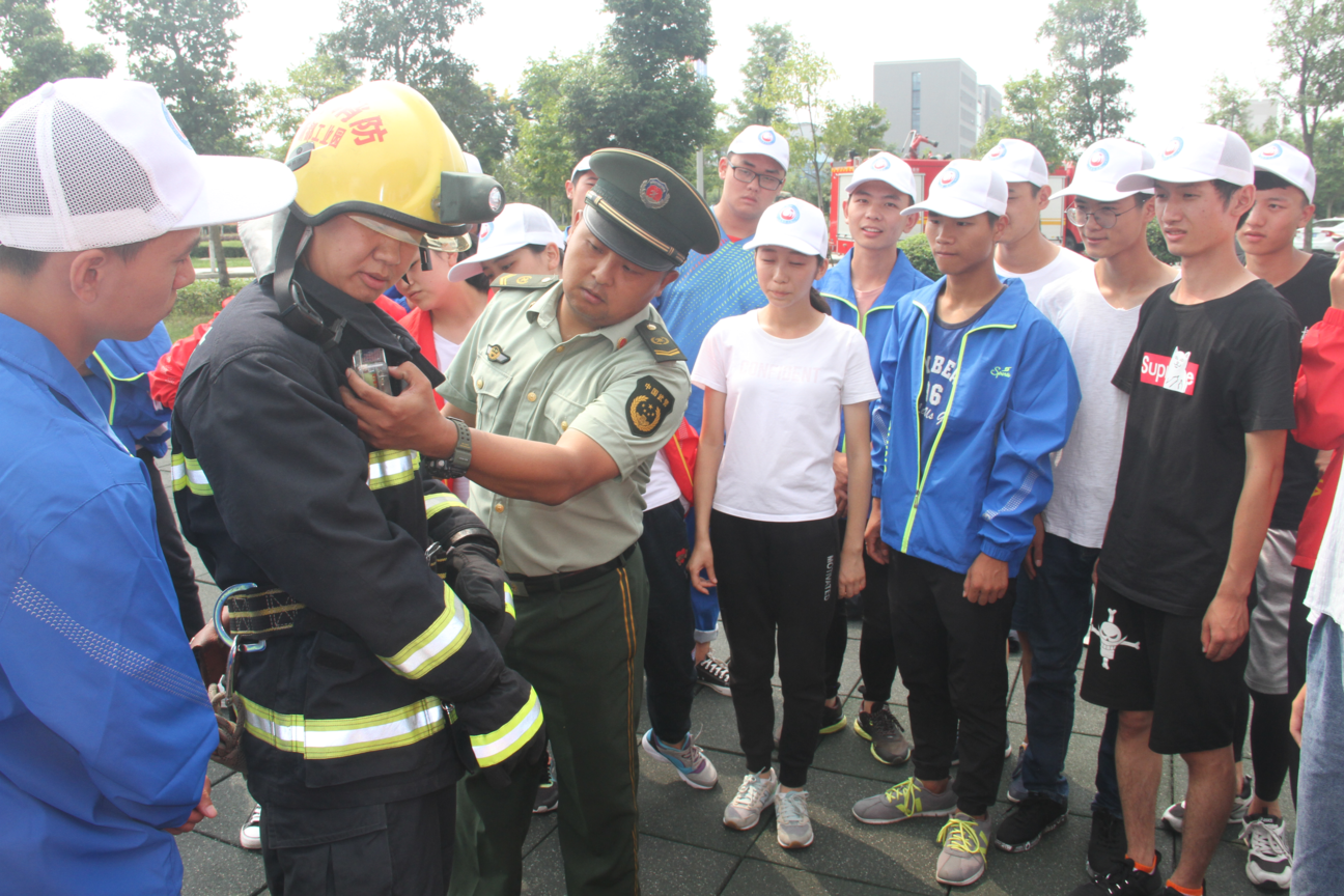 下午13时50分,2300余名新生在学校蜂巢席地而坐,认真聆听消防知识讲座。来自消防支队的魏指导员重点讲解了导致校园火灾事故的主要原因,要求学生一定要自觉遵守学校宿舍、实验室等管理规章制度,清醒认识火灾的危险性,增强防范意识;要善于及时发现初起火灾,做出准确判断,能及时扑救的要及时扑救,形成蔓延的要立即疏散逃生。理论课结束后,在蜂巢外,消防员给新生讲解了如何正确使用灭火器和消防水带,部分新生在大伙的鼓励下还尝试穿着了消防防火服。几分钟后,随着一盆篝火的燃起,学生们自告奋勇提起灭火器,按照之前传授的动作要领实战“灭火”。灭火结束后,针对存在的问题,魏指导员还逐一进行了纠正。
